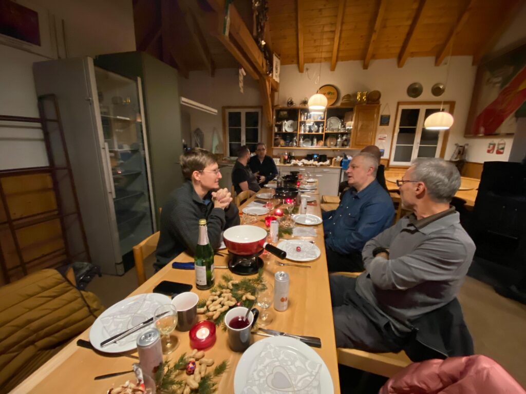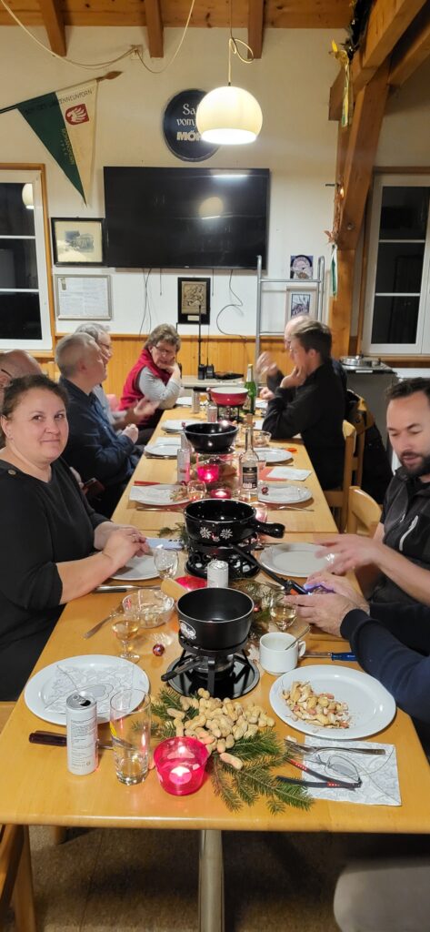Nach Erdnüssli zur Vorspeise durften wir bei knisterndem Schwedenofen ein leckeres Chäsfondue geniessen, interessante Gespräche über Funk- und andere Themen führen und einen gemütlichen Abend verbringen.