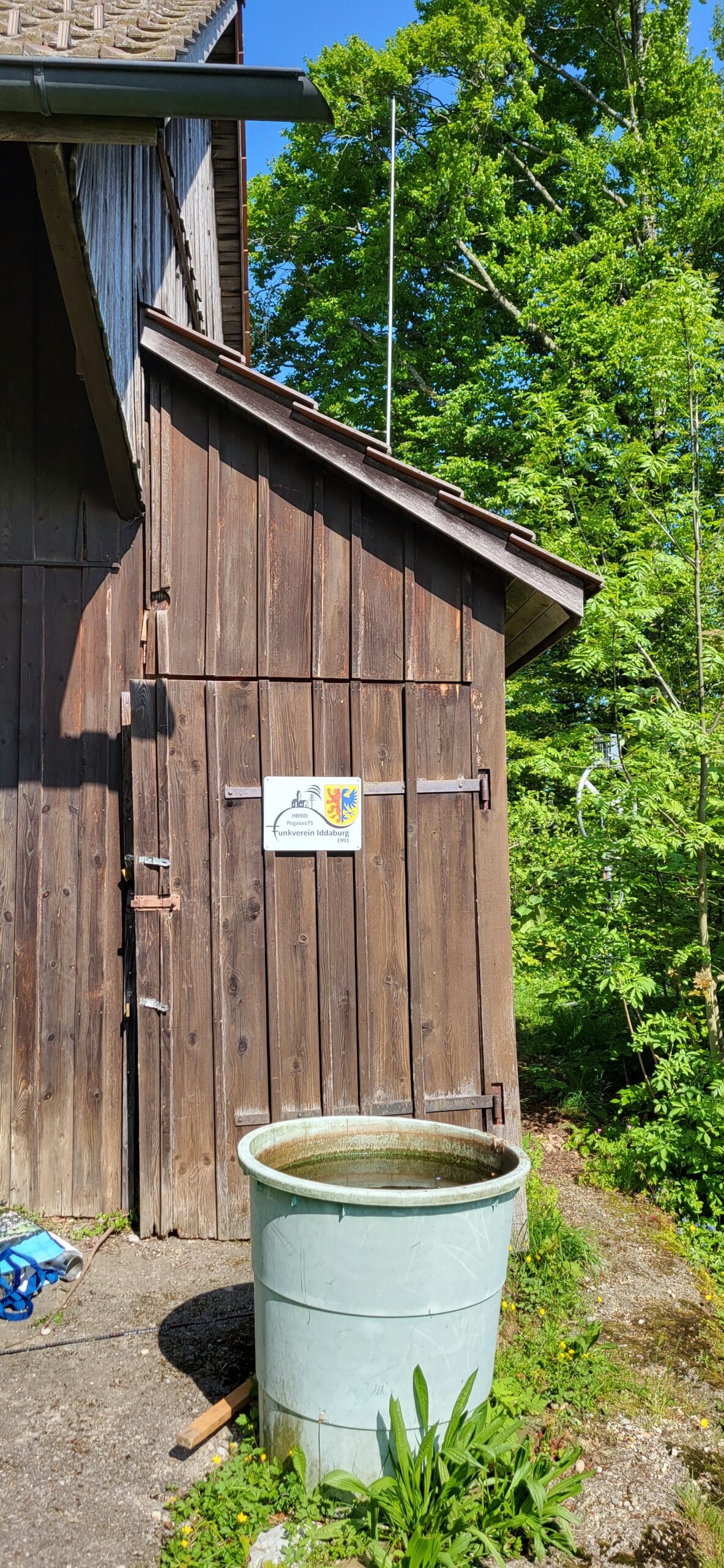 Mit der neuen Beschriftung an der Eingangstür zum Shack sehen die Wanderer und Iddaburg-Besucher auch den Zweck unseres Antennenwaldes.